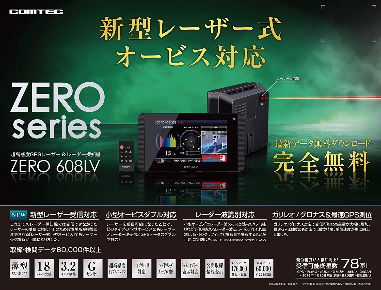ZERO 608LV コムテック レーザー光対応レーダー探知機 新型レーザー式オービス対応 レーザー取締共有システム搭載 データ更新無料 COMTEC