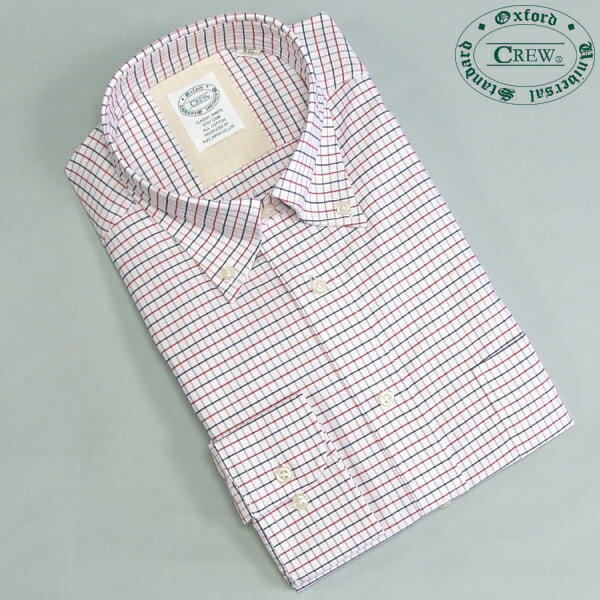 綿100% オックスフォードBD 長袖 メンズワイシャツ CREW クルー docw00-57 レッドブルータッタソールチェック 赤青 ボタンダウン カッターシャツ 標準体型